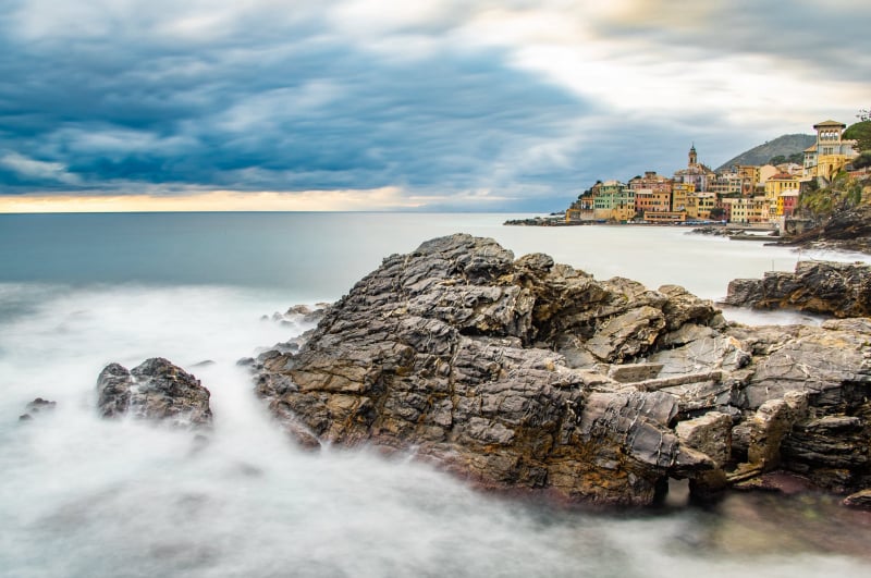 Treno per una fermata per arrivare a Bogliasco. Continueremo con gli esercizi sulla lunga esposizione, bracketing, HDR e uso del grandangolo. Aspetteremo le ore del tramonto per trovare i colori più caldi e per portare a casa gli scatti più interessanti della giornata.